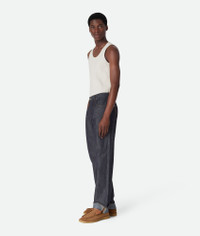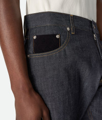 Product Details -Rinsed lightweight indigo washed turned-up jeans - Wide leg - Button fly - Intrecciato suede back patch - Color: Indigo - Made in: Italy - Product code: 831605V5SN04245 Size & Fit - Model is 188 cm|6'2" and is wearing a Bottega Veneta size 46