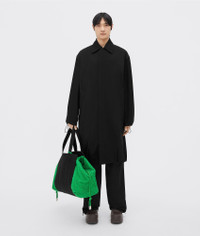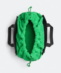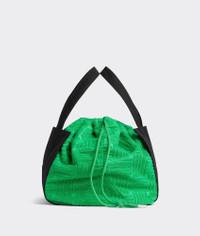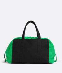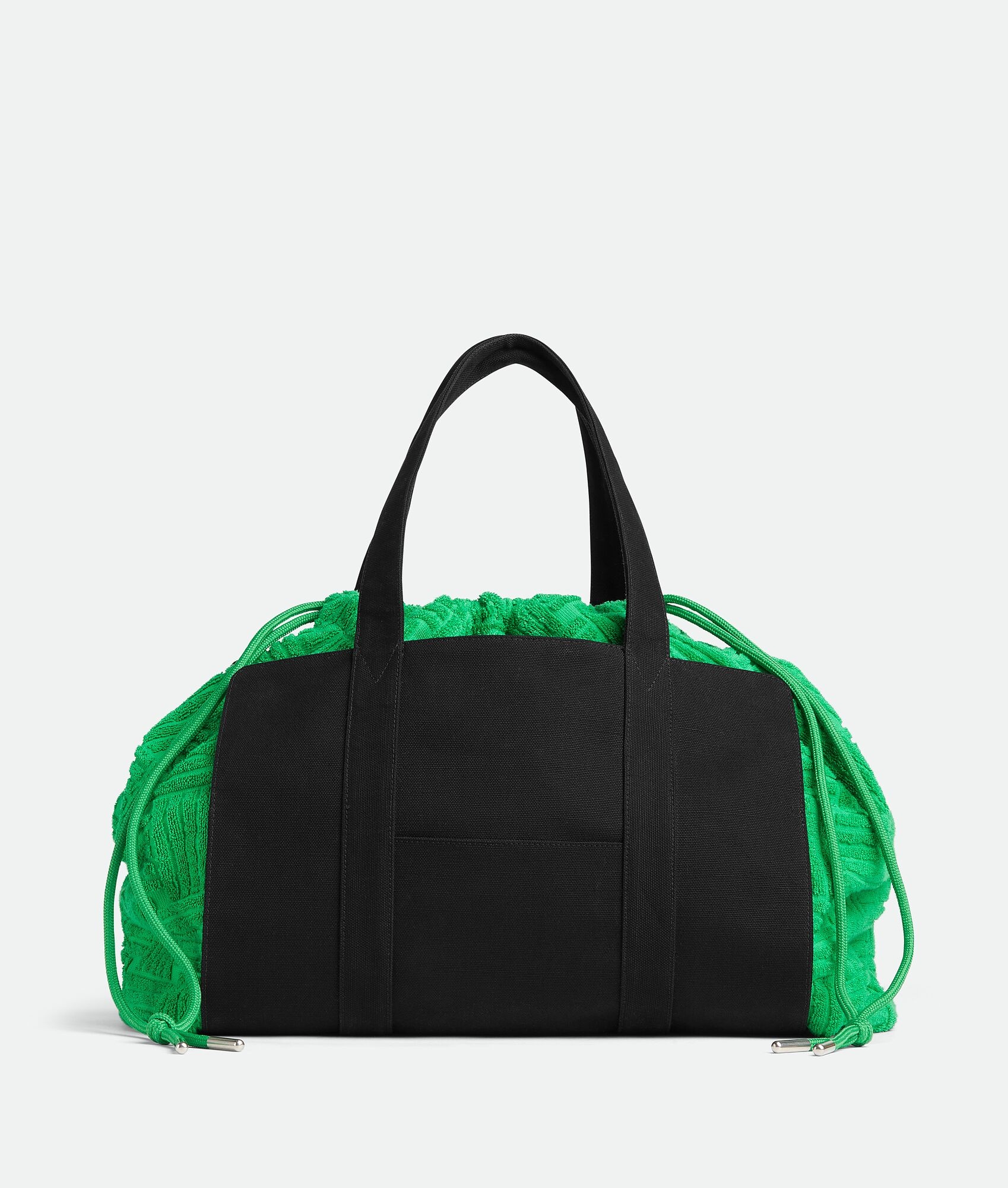 Jacquard towelling carryall tote bag. Product details • Jacquard towelling carryall tote bag • Canvas exterior wrap with single exterior open pocket and two additional interior press stud compartments • Single interior detachable zipped pocket • Drawstring closure Material: 48% Cotton, 48% Linen, 4% Polyurethane • Lining: Nylon • Color: Black/Grass • Hardware: Silver finish • Height: 43 cm | 17" • Width: 56 cm | 22" • Depth: 24 cm | 9.4" • Handle drop: 25 cm | 9.8" Made in: Italy