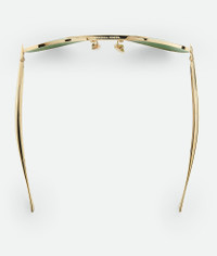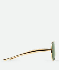 Aviator sunglasses in metal with sculptural sardine shape temples. Product Details - Temples with signature Sardine shape - Lenses made from polyamide with 39% bio-based content - BV1305S 001 - Color: Gold/Green - Made in: Japan - Product code: 779517V44508045 Material - Material: Metal