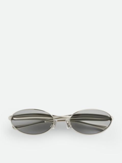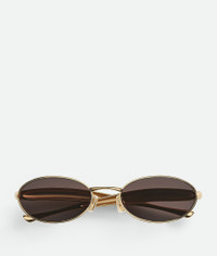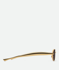 Oval sunglasses in metal with sculptural sardine shape temples. Product Details - Temples with sculptural sardine shape - Lenses made from polyamide with 39% bio-based content - BV1386S 001 - Color: Gold/Grey - Made in: Japan - Product code: 821495V44508043 Material - Material: Metal