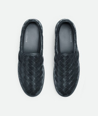 Slip-on sneaker realised with all-over Intrecciato craftsmanship in soft calfskin. Product Details - Intrecciato leather slip-on sneaker - Material: calfskin - Lining: Calfskin - Color: Shadow - Rubber outsole - Made in: Italy - Product code: 775320V3HB04207