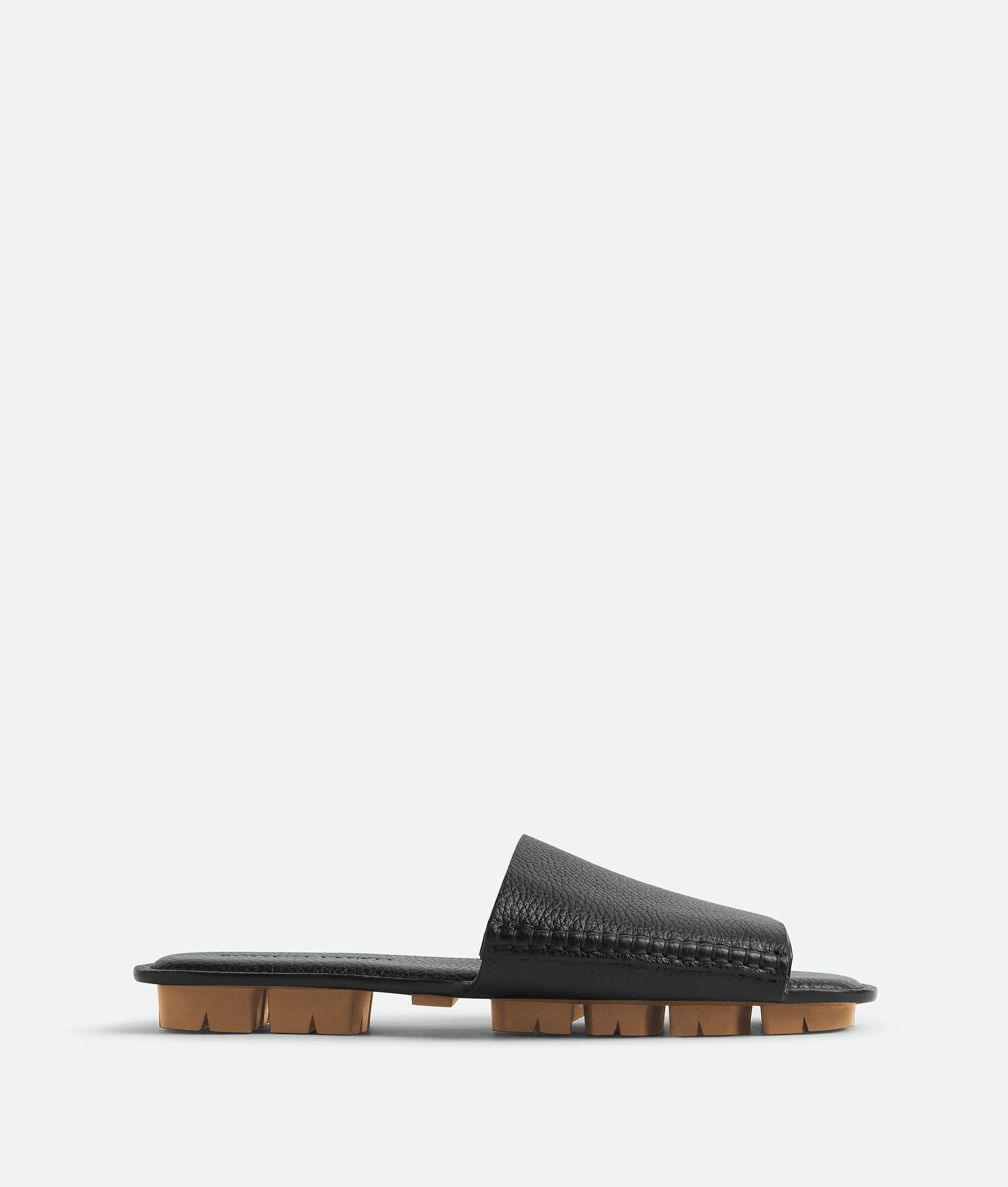 Mule sandal realised in grainy calfskin leather with oversized rubber-injected outsole. Product Details - Grainy leather mule sandal - Material: Grainy Calfskin - Lining: Calfskin - Color: Black - Oversized rubber-injected outsole - Made in: Italy - Product code: 796653V3XP01000