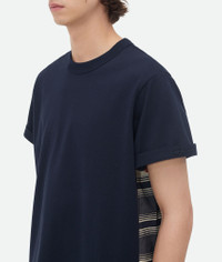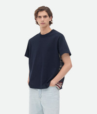T-shirt in soft cotton jersey with check insert. Product Details - Soft cotton jersey T-shirt - Check cotton insert - Regular fit - Material: 100% cotton - Color: Abyss/Multistripes - Made in: Italy - Product code: 816352V4ZL14624