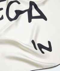 Foulard in classic silk twill, featuring an enlarged Bottega Veneta print. Product Details - Silk twill small foulard - Logo print - Color: Chalk/Double Black - Made in: Italy - Product code: 871583V6KX01973 Material - Material: 100% silk Size & Fit 55 x 55 cm | 21.6 x 21.6"