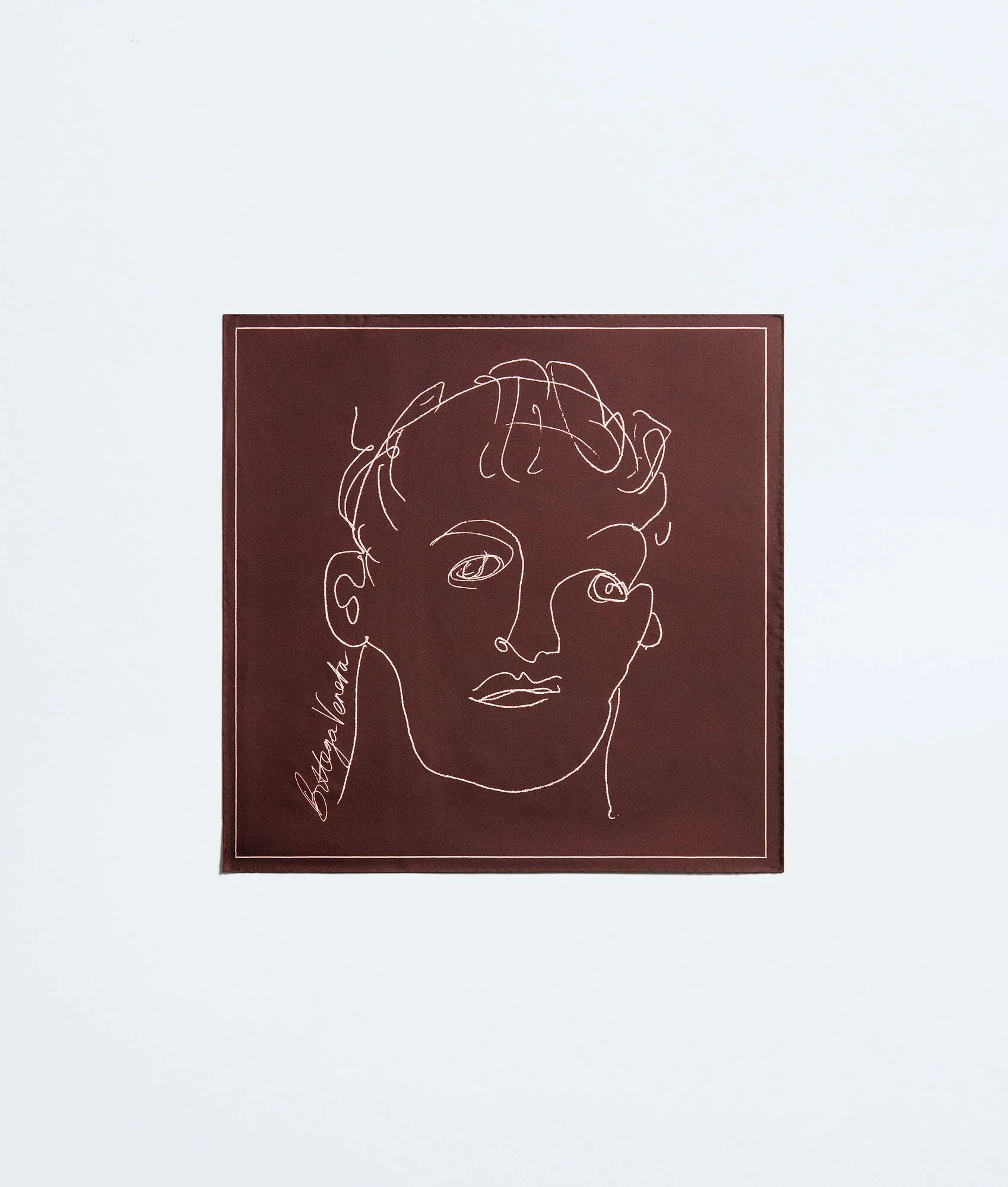 Foulard in classic silk twill, featuring a doodled face print Product Details - Silk twill small foulard - Face doodle print - Color: Barolo - Made in: Italy - Product code: 870799V6KX02240 Material - Material: 100% silk Size & Fit 55 x 55 cm | 21.6 x 21.6"