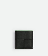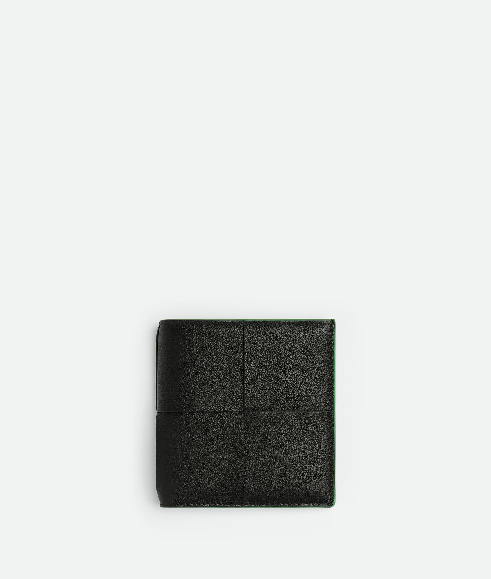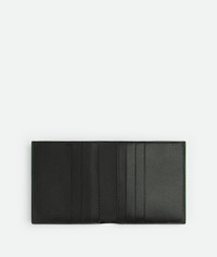 Intreccio grained leather wallet. Make it unique with a handmade customization Product Details - Intreccio grained leather wallet - Six card slots, one note compartment, two additional pockets - Material: Lambskin, Calfskin - Lining: Calf leather - Color: Black/Parakeet - Height: 10 cm I 3.9" - Width: 9.5 cm I 3.7" - Depth: 1 cm I 0.4" - Made in: Italy - Product code: 679847V1Q731045