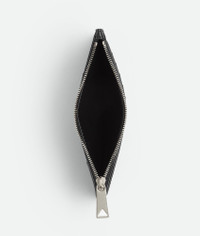 Intreccio leather card case. Product Details - Intreccio leather card case - Seven card slots, one additional pocket, one zippered coin purse - Material: calfskin - Lining: Calf leather - Color: Black - Hardware: Silver finish - Height: 8.5 cm I 3.3" - Width: 16 cm I 6.3" - Depth: 0.5 cm I 0.2" - Made in: Italy - Product code: 749460VBWD38803