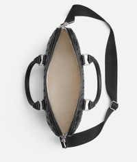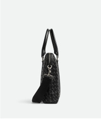 Archetypal briefcase realised with Intrecciato craftsmanship in soft calfskin leather Product details • Small Intrecciato leather briefcase with removable shoulder strap • One interior zipped pocket • Zip closure Material: 100% Calfskin • Lining: Canvas • Colour: Black-Natural stitch • Hardware: Silver finish • Height: 29 cm | 11.4" • Width: 36 cm | 14.2" • Depth: 7.5 cm | 3" • Handle drop: 14 cm | 5.5" • Strap drop: 60 cm | 23.6" Made in: Italy