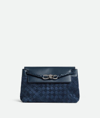 Product Details - Small Intrecciato suede messenger with adjustable and detachable cross-body strap - Two interior flat open pockets and one zipped pocket - Flap closure - Lining: Canvas - Color: Neptune - Hardware: Vintage Silver finish - Made in: Italy - Product code: 815781V1QE54038 Material - Material: Calfskin Size & Fit - Height: 20 cm | 7.9" - Width: 29 cm | 11.4" - Depth: 13 cm | 5.1" - Strap drop: 58 cm | 22.8" - Fits a 16" laptop