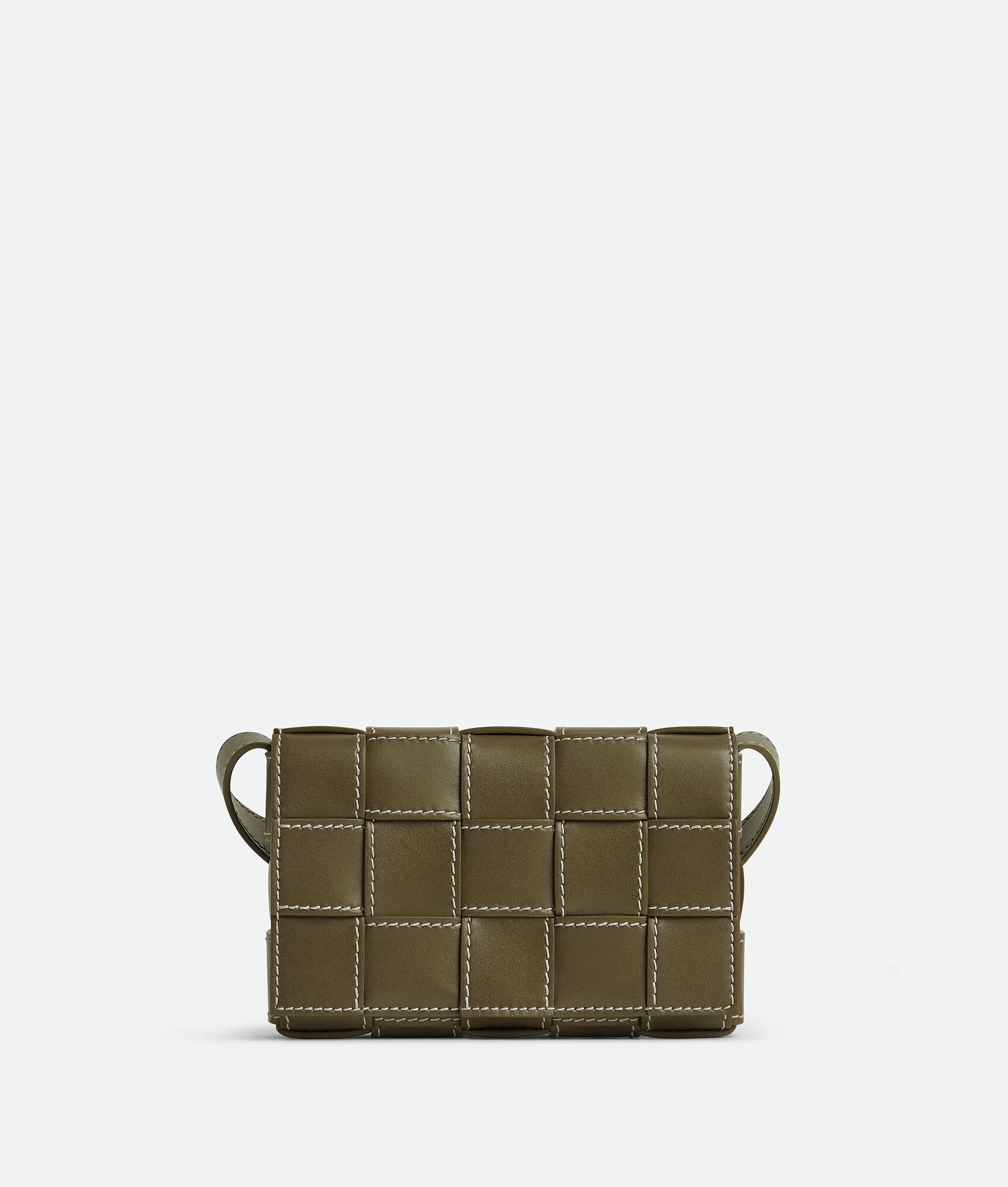 Cross-body bag realised with Intreccio craftsmanship in leather with edge-stitching Product Details - Small Intreccio leather cross-body bag with edge-stitching detail - Single interior zipped pocket - Magnetic closure - Material: Calfskin - Lining: Calfskin bonded Intreccio - Colour: Mud-Natural stitch - Hardware: Silver finish - Height: 10.5 cm | 4.1" - Width: 17.5 cm | 6.9" - Depth: 3.5 cm | 1.4" - Strap drop: 55 cm | 21.7" - Made in: Italy - Product code: 763686V39K02866