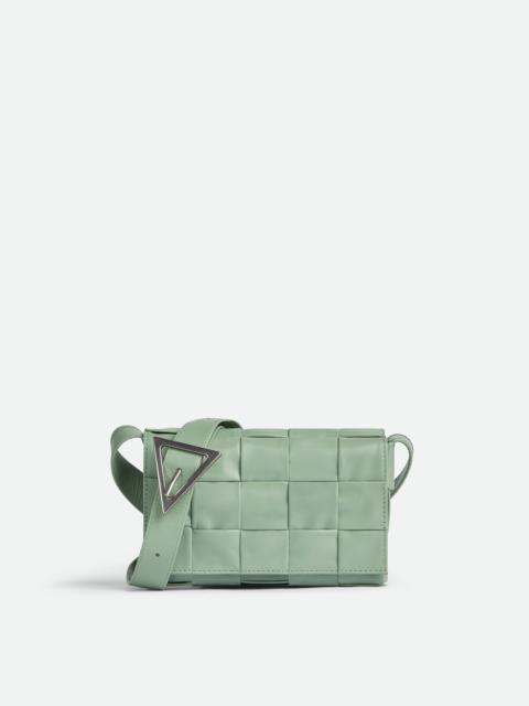• Small intreccio leather crossbody bag • Single interior zip pocket • Magnetic closure Material: 100% Calfskin • Unlined • Color: New Sauge • Hardware: Silver finish • Height: 10.5 cm | 4.1" • Width: 17.5 cm | 6.9" • Depth: 3.5 cm | 1.4" • Strap drop: 55 cm | 21.7" Made in: Italy