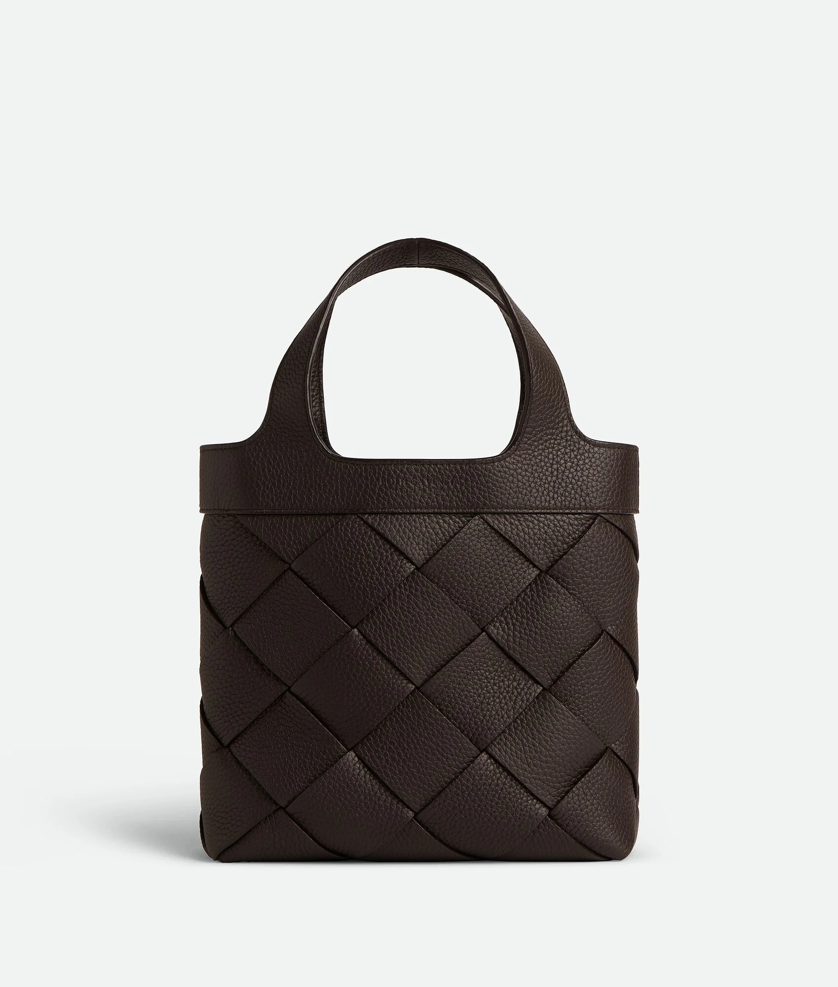 Tote bag in grained Intreccio leather with adjustable and detachable cross-body strap. Product Details - Grained Intreccio leather small tote bag with two handles and an adjustable and detachable strap - Single interior zipped pocket and two flat open pockets - Zipper closure - Material: Calfskin - Lining: Unlined - Color: Fondant - Hardware: Silver finish - Height: 25 cm | 9.8" - Width: 22 cm | 8.7" - Depth: 7 cm | 2.8" - Handle drop: 13 cm | 5.1" - Strap drop: 50 cm | 19.7" - Made in: Italy - Product code: 837364V4FV12145