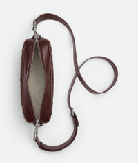 Cross-body bag in Intrecciato leather with detachable strap and metal D-ring. Product Details - Small Intrecciato leather cross-body bag with detachable strap and metal D-ring - One interior flat pocket - Zip closure - Material: calfskin - Lining: Canvas - Color: Madder Brown - Hardware: Silver finish - Height: 15 cm | 5.9” - Width: 24.5 cm | 9.6” - Depth: 6 cm | 2.4” - Strap drop: 55 cm | 21.7” - Made in: Italy - Product code: 755923V2HL12128