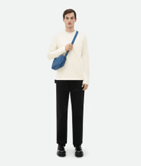 Intrecciato leather crossbody bag. Product Details - Intrecciato leather crossbody bag - Single compartment - Zip closure - Material: Calfskin, Polypropylene, Polyester - Lining: Bonded suede - Color: Surf - Hardware: Silver finish - Height: 15 cm | 5.9" - Width: 24.5 cm | 9.6" - Depth: 6 cm | 2.3" - Strap drop: 60 cm | 23.6" - Made in: Italy - Product code: 710048V2E424225