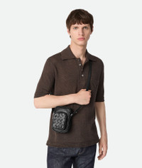 Product Details - Small vertical cross-body bag with smooth leather body and Intrecciato leather external pocket - Adjustable and detachable strap - One interior flat pocket - Zipper closure - Lining: Canvas - Color: Black - Hardware: Silver finish - Made in: Italy - Product code: 843839V2HL18803 Material - Material: Calfskin Size & Fit - Height: 17 cm | 6.7" - Width: 12 cm | 4.7 - Depth: 7 cm | 2.8" - Strap drop: 58 cm | 22.8"