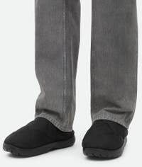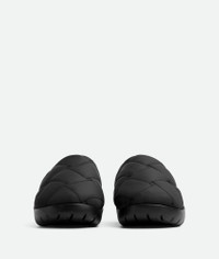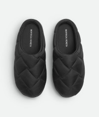 Open-back slipper in padded nylon with quilted Intreccio design. Product Details - Padded nylon open-back slipper - Material: Nylon - Lining: Polyester - Color: Black - Rubber outsole - Flatform: 3.5 cm | 1.4" - Made in: Italy - Product code: 796467V3RX01000
