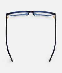 Square eyeglasses in soft recycled acetate. Available online only. Product Details - Smart fit - Suitable for progressive lenses - This product comes with demonstrative lenses. Please refer to an optician or specialist for prescription lenses - Lens width: 56 mm | 2.2"; Bridge length: 16 mm | 0.6"; Temple length: 145 mm | 5.7" - BV1256O 008 - Color: Blue/Transparent - Made in: Italy - Product code: 770653V2Q301504 Material - Material: acetate Size & Fit - A - Hinges distance: 134.6 mm | 5.2" - B - Bridge length: 16 mm | 0.6" - C - Lens width: 56 mm | 2.2" - D - Temple length: 145 mm | 5.7"