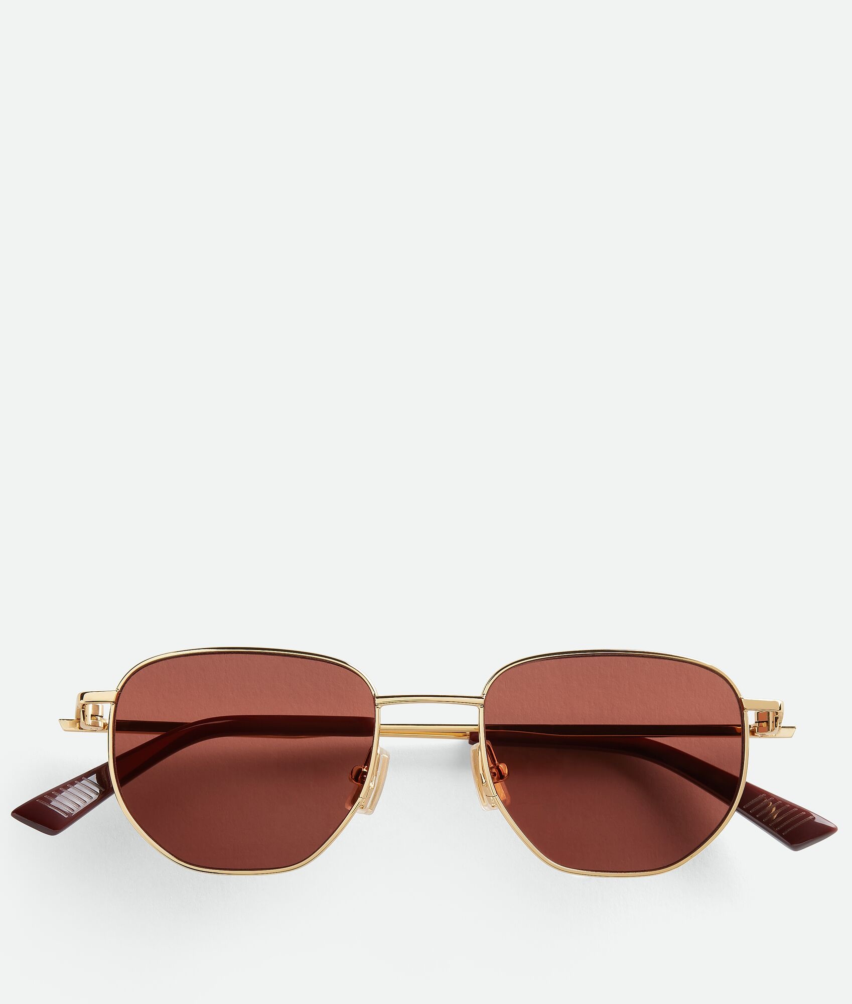 Panthos sunglasses in metal. Product details • Bio nylon lenses • Recycled acetate temple tips • BV1301S 003 Material: Metal • Color: Gold/Brown Made in: Italy