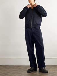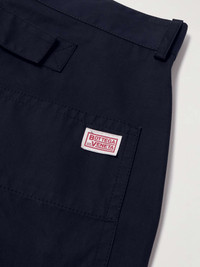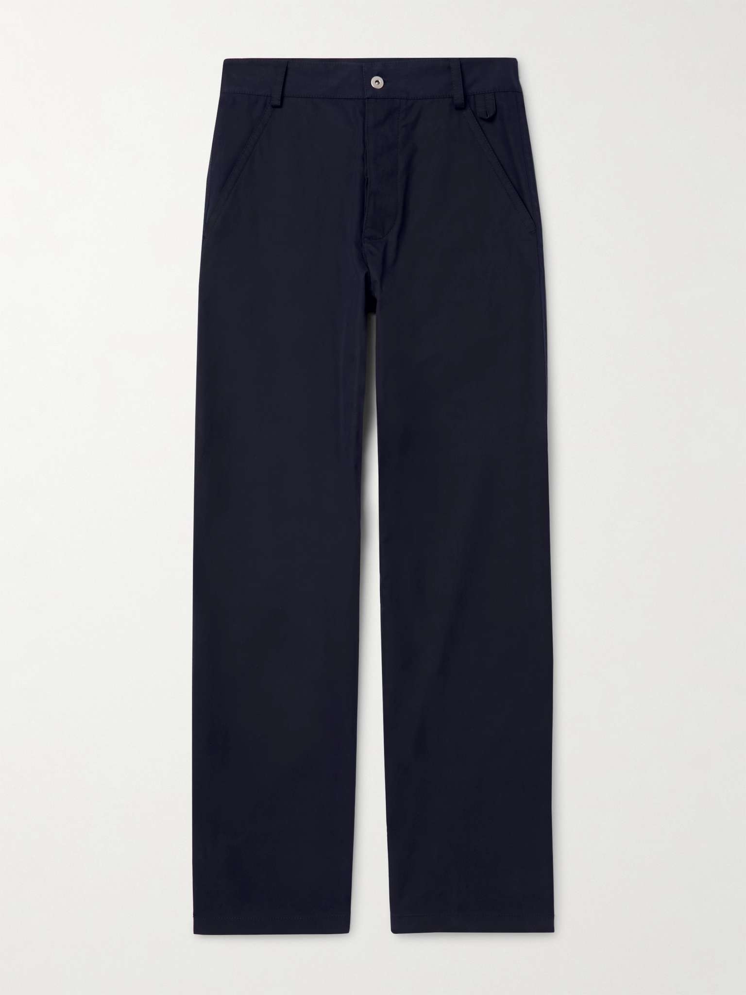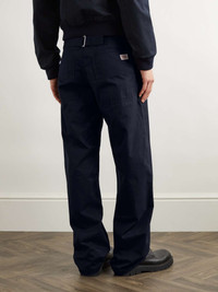 Bottega Veneta's trousers are cut in a classic straight fit from sturdy cotton-twill. On the back, they're finished with a retro logo patch and a buckled strap for a cool, workwear feel. Size & Fit - Fits true to size. Take your normal size - Relaxed-straight leg, low-crotch style - Adjustable tabs at the waist - Mid-weight, non-stretchy fabric - Model is shown wearing an IT 46 - Model measures: waist size 30, height 6'2""/ 188cm Details & Care - Dark-blue cotton-twill - Button fastenings - 100% cotton