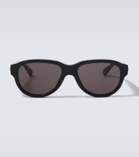 Since 1966, Bottega Veneta has stood for expert Italian craftsmanship and luxury design. Adorned with golden hardware at the temples, the Stretch round sunglasses feature dark gray lenses and black acetate frames. Product Details - Frame material: acetate - Frame color: black - Lens filter category 3 - Lens color: grey - Made in Japan - Includes: case, cleaning cloth - The color of the case may vary - Item number: P01099583 Size & Fit - Lens width: 55mm-2.15" - Bridge size: 18mm-0.7" - Earpiece length: 145mm-5.7"