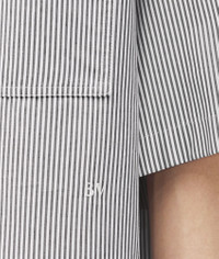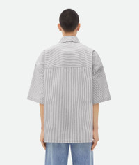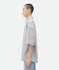 Overshirt in striped compact cotton. Product Details - Striped cotton overshirt - "BV" embroidery on the front - Button closure - Relaxed fit - Material: Cotton - Color: Grey/White - Made in: Italy - Product code: 789370V3ZA01160 Size & Fit - Model is 188 cm|6'2" and is wearing a Bottega Veneta size 46
