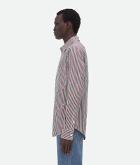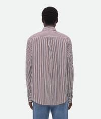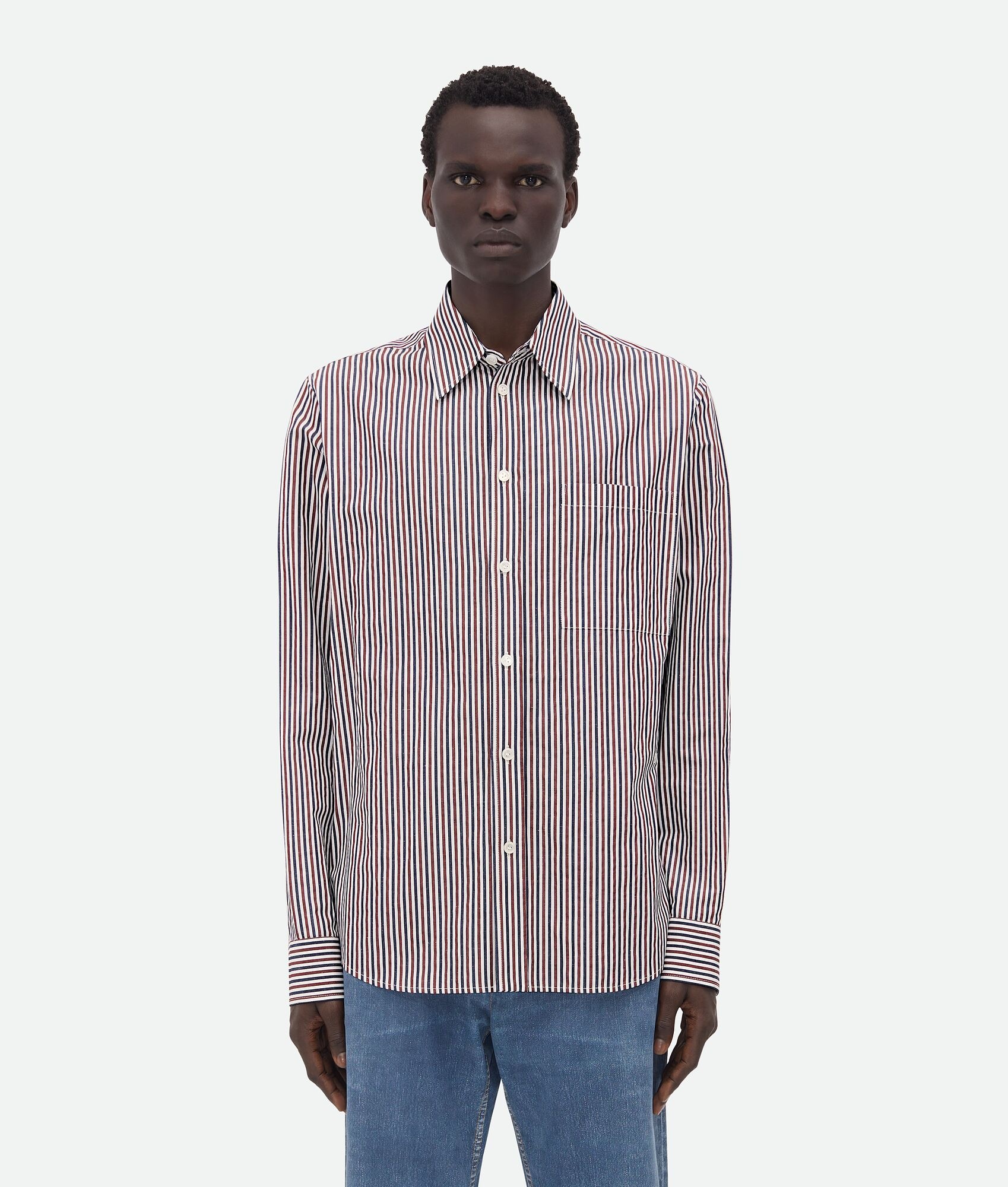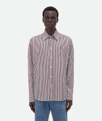 Striped shirt in cotton and linen. Product Details - Bi-color stripe shirt - "BV" embroidery on the front - Button closure - Regular fit - Material: Cotton, Linen - Color: Bordeaux/Navy - Made in: Italy - Product code: 786340V3ZD06047 Size & Fit - Model is 185 cm|6' and is wearing a Bottega Veneta size 46