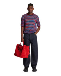 Bottega Veneta Multicolor Cotton T-Shirt. Multicolor cotton blend with horizontal striped design, round neckline, short sleeves, contrasting striped trims, straight hem, relaxed fit. Yoan is 185 cm and he is wearing size L. DETAILS Model: 811528V4WU04510 Composition: 88% Cotton, 12% Polyamide Made in: ITALY Season: SS25