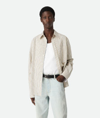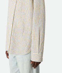 Striped shirt in cotton and linen. Product Details - Cotton and linen stripe shirt - "BV" embroidery on the front - Material: 84% Cotton, 12% linen, 4% polyamide - Color: Chalk/Charcoal/Yuzu - Made in: Italy - Product code: 786340V5CW01330 Size & Fit - Model is 186 cm|6'1" and is wearing a Bottega Veneta size 46