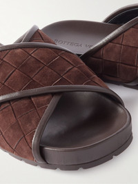 Intrecciato was originally developed by Bottega Veneta to strengthen its hides, but it's gone on to become the most significant symbol of the house. It appears on these 'Tarik' sandals, which are hand-woven from soft suede and set on supple leather footbeds. Size & Fit - Fits true to size. Take your normal size - Only available in full sizes, go up to the nearest whole size if you take a half size - European sizing Details & Care - Brown suede (Calf)