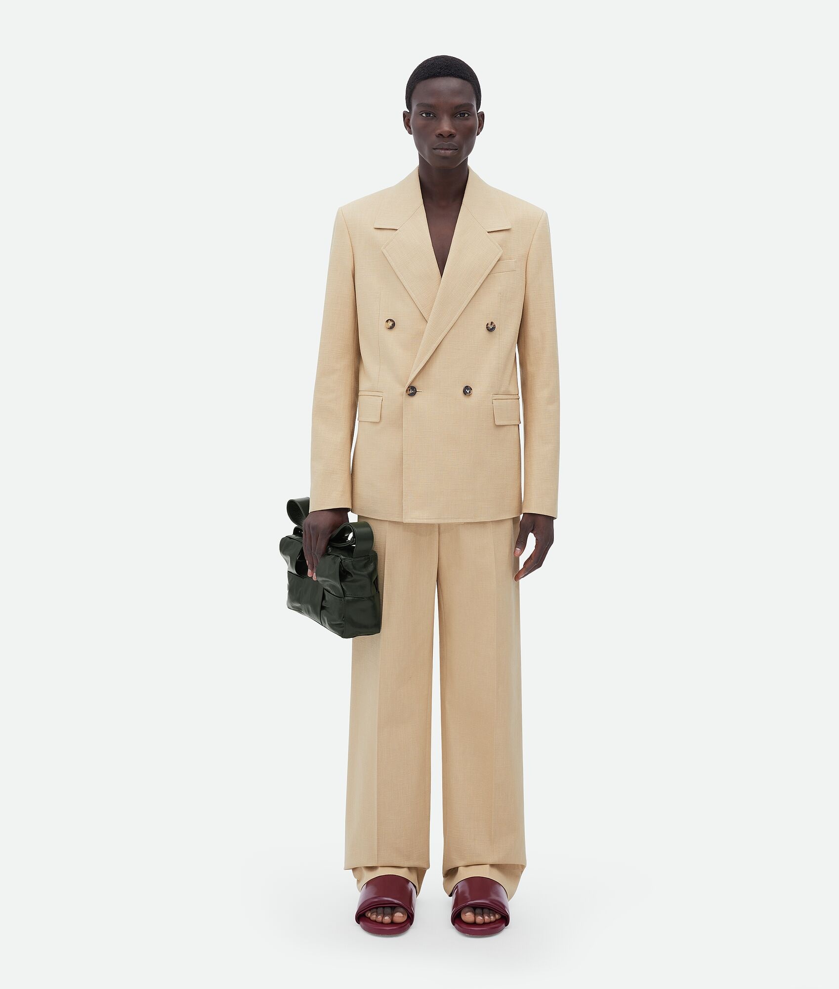 Textured cotton jacket. Product details • Textured cotton jacket • Button closure • Half lined • Regular fit Material: 100% Cotton • Color: Dune Made in: Italy Size & fit • Model is 187 cm | 6'1" and is wearing a Bottega Veneta size 46