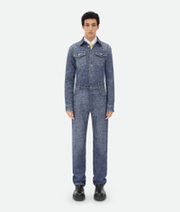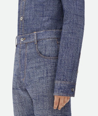 Trousers realised in viscose with an enlarged denim texture. Product details • Textured denim viscose trousers • Button closure • Straight leg Material: 40% Viscose, 35% Silk, 25% Polyester • Color: Indigo/White Made in: Italy Size & fit • Model is 187 cm|6'1" and is wearing a Bottega Veneta size 46