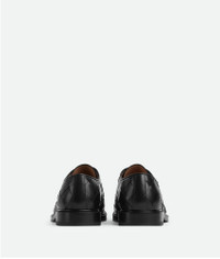 Lace-up shoe realised in smooth calfskin with all-over Intrecciato craftsmanship. Product Details - Intrecciato leather lace-up shoe - Material: Calfskin - Lining: Calfskin - Color: Black - Made in: Italy - Product code: 763737V2WX01000