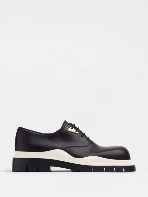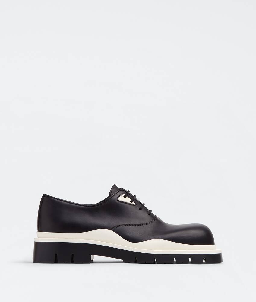 • Vegetally-tanned leather lace-up shoes Material: 100% Calfskin • Lining: Calfskin • Color: Black/White • Rubber outsole • Flatform: 5.5 cm | 2.2 " Made in: italy