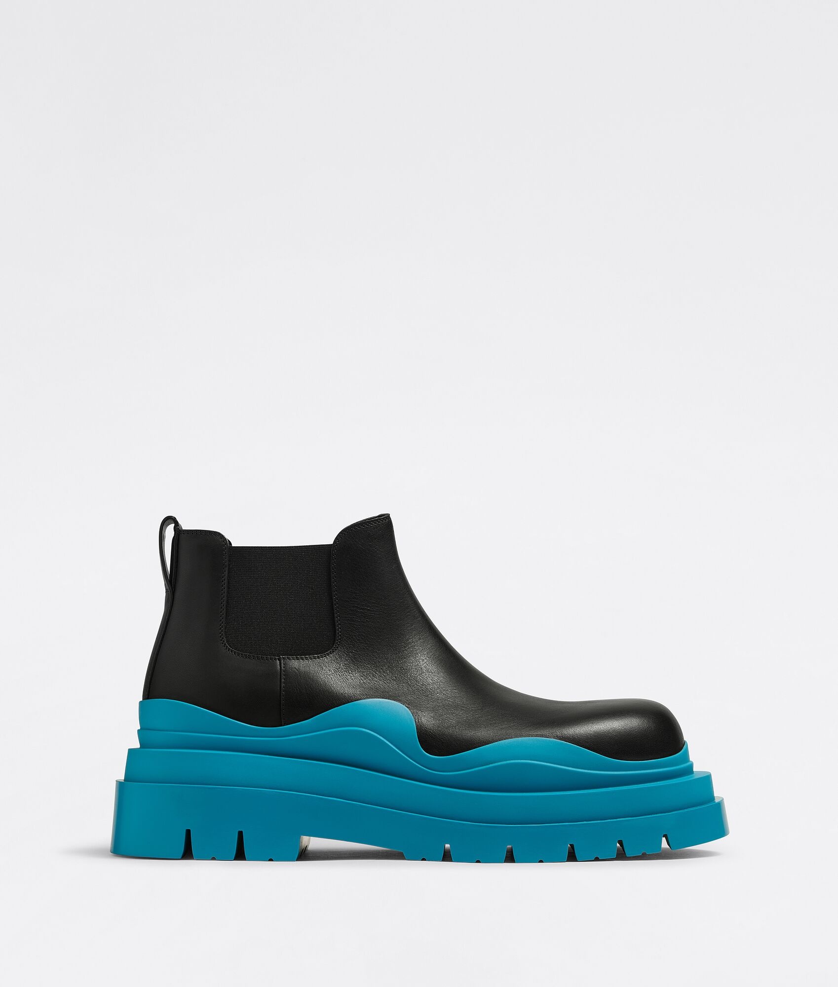 • Vegetable-tanned leather cropped Chelsea boots Material: 100% Calfskin • Lining: Calfskin • Color: Black/Amalfi Blue • Rubber outsole • Flatform: 5.5 cm | 2.2” • We recommend to take half a size to one size down Made in: italy
