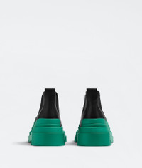 • Vegetable-tanned leather cropped Chelsea boots Material: 100% Calfskin • Lining: Calfskin • Color: Black/Acid Turquoise • Rubber outsole • Flatform: 5.5 cm | 2.2” • We recommend to take half a size to one size down Made in: italy