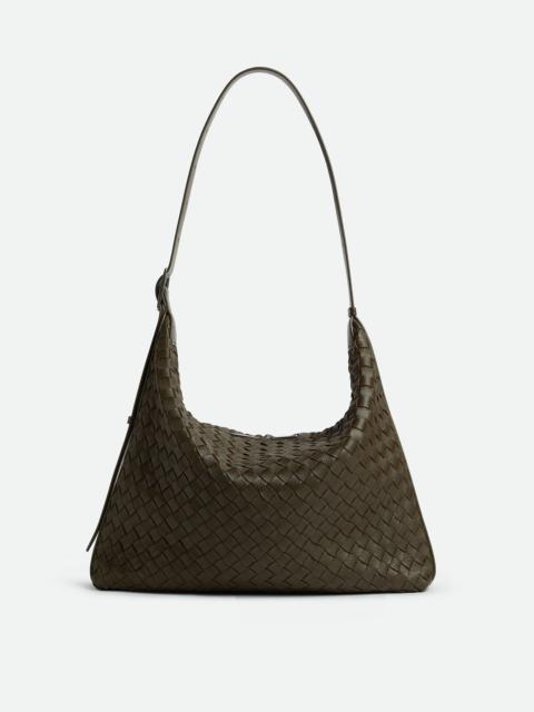 Hobo bag in Intrecciato deer leather with adjustable strap. Product Details - Intrecciato deer skin hobo bag with adjustable strap - Two interior open pockets, one zipped pocket and key-hook on strap - Zip closure - Material: deerskin, calfskin - Lining: Suede - Color: Kaki - Hardware: Silver finish - Height: 33 cm | 13" - Width: 44 cm | 17.3 - Depth: 9 cm | 3.5" - Strap drop: 25 cm | 9.8” - Made in: Italy - Product code: 806974V4TD13386
