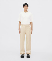• Sanded cotton twill wide leg trousers • Zip, button, and hook closure Material: 100% Cotton • Color: Sea Salt Made in: Italy