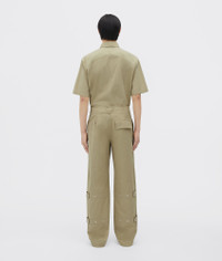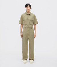 • Compact cotton wide leg trousers • Zip, button, and hook closure Material: 100% Cotton • Color: Travertine Made in: Italy