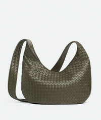 Cross-body bag with rounded shape in Intrecciato nappa fluffy. Product Details - Intrecciato nappa fluffy cross-body bag - One interior zipped pocket - Zip closure - Lining: Suede - Color: Crocodile - Hardware: Silver finish - Made in: Italy - Product code: 826877V5KD03248 Material - Material: Lambskin Size & Fit - Height: 24 cm (9.4") - Width: 38 cm (15.0") - Depth: 2 cm (0.8") - Strap drop: 50 cm (19.7")