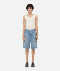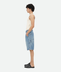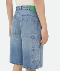 Cargo denim shorts in a vintage indigo wash. Product Details - Vintage indigo cargo denim shorts - Button closure - Material: 100% Cotton - Color: Mid Blue - Made in: Italy - Product code: 794042V42W04715 Size & Fit - Model is 189 cm|6'2" and is wearing a Bottega Veneta size 46