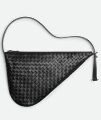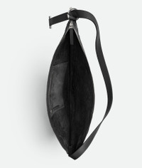 Cross-body bag meticulously made from soft calfskin leather using Intrecciato craftsmanship. Product details • Intrecciato leather cross-body bag • Leather sliding strap adjustable with metal ring and T-bar • Single interior zipped pocket • Zipper closure Material: 100% Calfskin • Lining: Suede • Color: Black • Hardware: Silver finish • Height: 33 cm | 13" • Width: 52 cm | 20.5" • Depth: 2 cm | 0.8" • Strap drop: 40 cm | 15.8" Made in: Italy