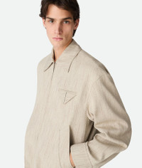 Blouson with kimono construction in textured viscose and silk. Product Details - Textured viscose and silk blouson - Kimono construction - Zipper closure - Interior adjustable drawstring - Regular fit - Material: 56% Viscose, 36% polyester, 8% silk - Color: Gray Putty - Made in: Italy - Product code: 833836V5QR02674 Size & Fit - Model is 189 cm|6'2" and is wearing a Bottega Veneta size 46