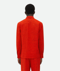Shirt in bi-colour viscose and silk. Product Details - Bi-color viscose and silk shirt - Triangle pocket detail - Button closure - Regular fit - Material: 80% wool, 20% cashmere - Color: Hibiscus/Red/Black - Made in: Italy - Product code: 703578V50M06170 Size & Fit - Model is 190 cm|6'2" and is wearing a Bottega Veneta size 46