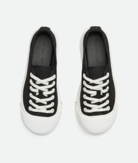 Canvas lace-up platform sneaker. Product Details - Canvas lace-up platform sneaker - Material: Cotton - Lining: Cotton - Color: Black/White - Rubber outsole - Flatform: 4.5 cm | 1.8" - Made in: Italy - Product code: 786887V2R101008