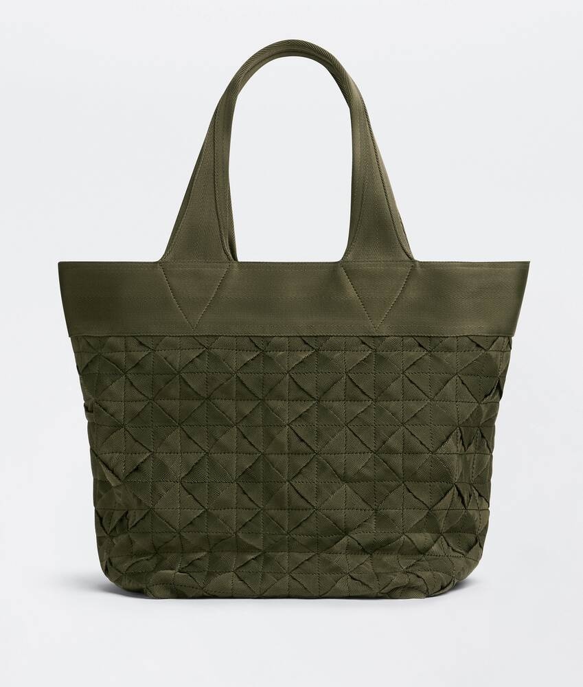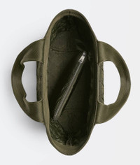 • Intrecciato light webbing tote bag • One removable interior zipped pocket Material: 100% Polypropylene • Unlined • Color: Camping • Hardware: Silver finish • Height: 39 cm • Width: 26 cm • Depth: 26 cm • Handle drop: 21 cm Made in: italy