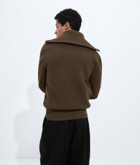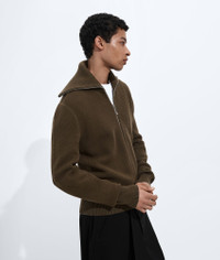 Product Details - Mid-weight merino wool and cotton double knit cardigan - Zipper closure - Metal knot zipper pull - Regular fit - Color: Dark Moss - Made in: Italy - Product code: 862729V68M02637 Material - Material: 50% wool, 50% cotton Size & Fit - Model is 189 cm|6'2" and is wearing a Bottega Veneta size S