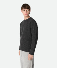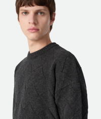 Jumper in midweight wool with 3D Intrecciato pattern. Product Details - Midweight wool sweater with Intrecciato pattern - Regular fit - Color: Anthracite - Made in: Italy - Product code: 751972V5WZ01370 Material - Material: 95% Wool, 4% Polyamide, 1% Elastane Size & Fit - Model is 190 cm | 6'2" and is wearing a Bottega Veneta size S