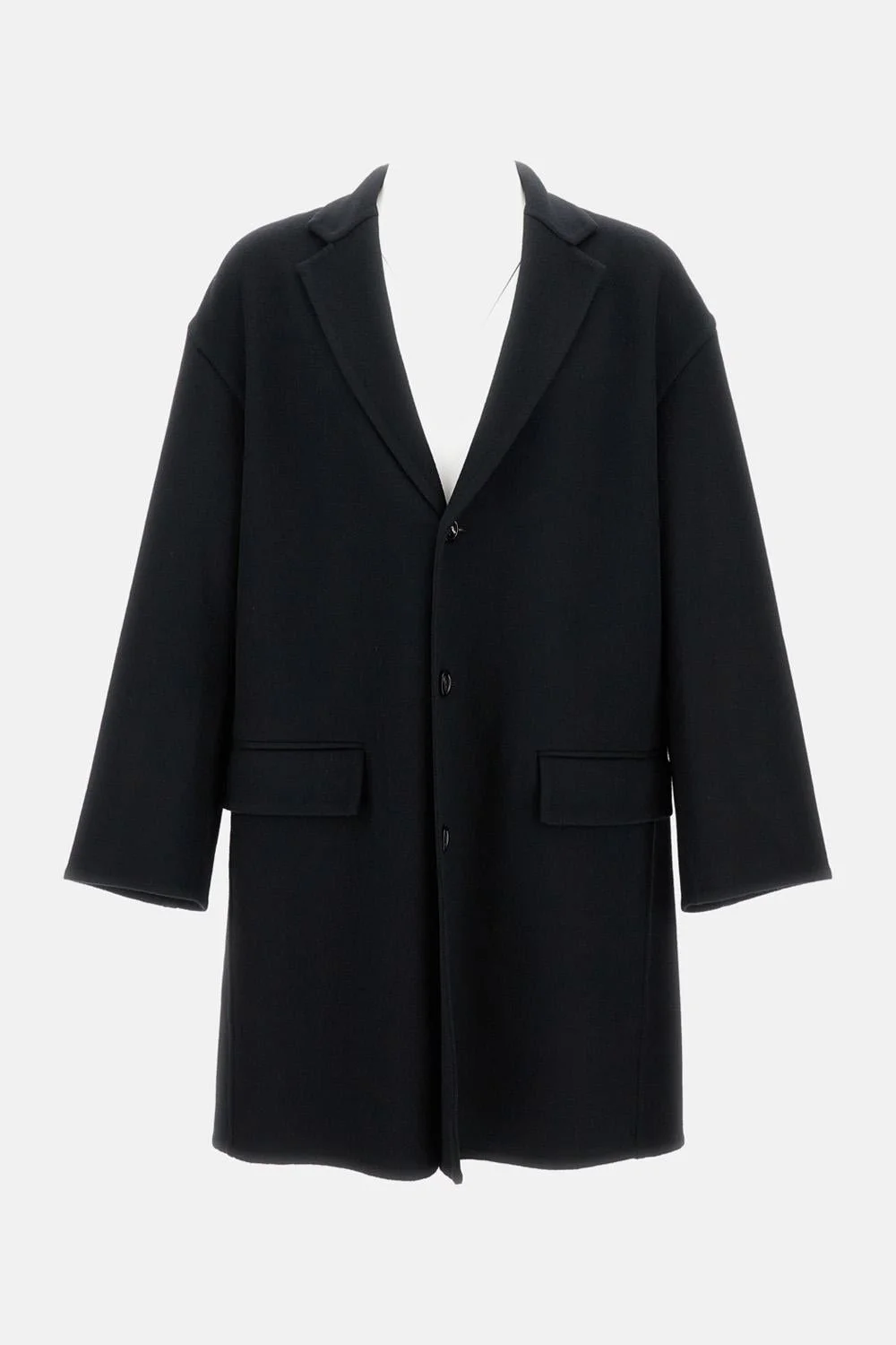 Long wool coat Flap pockets Front button closure Notched collar Dropped shoulder Over fit Made in Italy Details and Care Color: Nero Composition: 100% WO Made in: Italia Sku: 815142V4CB01000