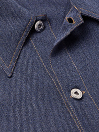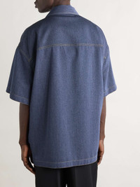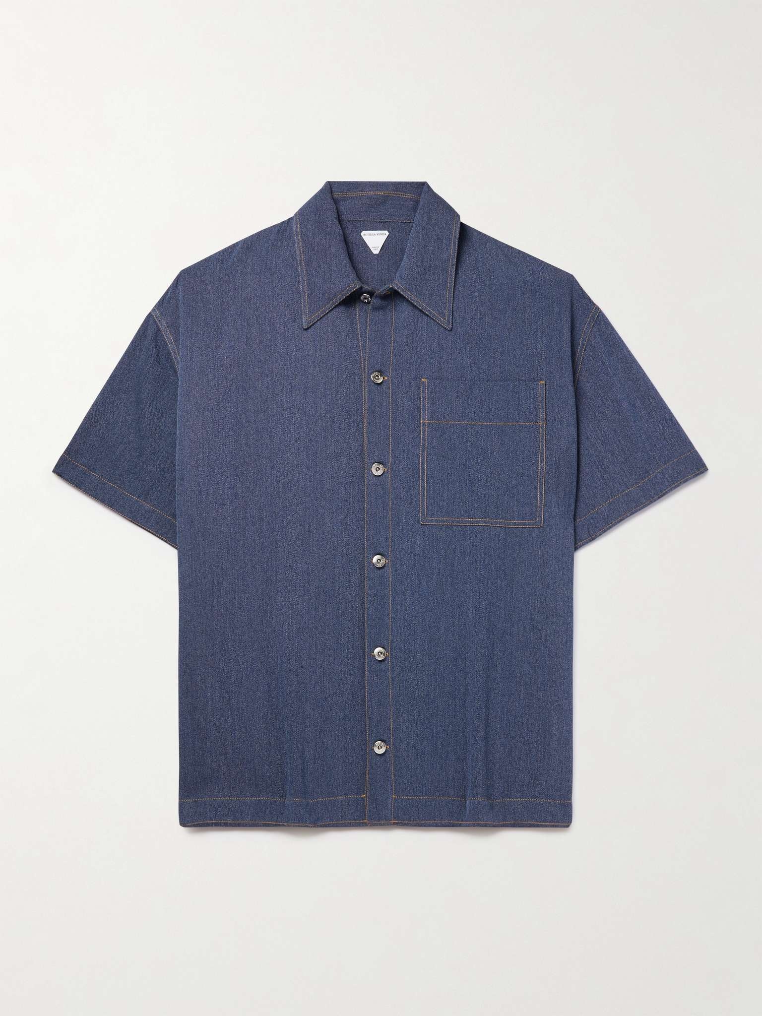Bottega Veneta's shirt is cut for an oversized fit from wool and cotton-blend drill, a durable, tightly woven fabric often used in workwear. It's detailed with contrast topstitching and fastens with the same logo-engraved buttons as trucker jackets. Size & Fit - Intended to be oversized; we recommend sizing down if you prefer a closer fit - Dropped shoulder seam - Mid-weight, non-stretchy fabric - Model is shown wearing an IT 46 - Model measures: chest 36"/ 92cm, height 6'3"/ 191cm Details & Care - Blue melange wool and cotton-blend drill - Button fastenings - 63% wool, 37% cotton