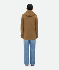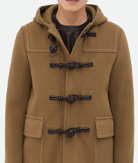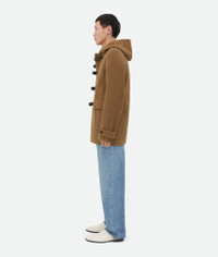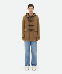 Hooded duffle coat realised in wool with Intrecciato leather buttons. Product Details - Hooded wool duffle coat - Handmade Intrecciato leather alamari buttons - Button closure - Fully lined - Regular fit - Material: 100% Wool - Color: Acorn - Made in: Italy - Product code: 792954V4BQ07728 Size & Fit - Model is 188 cm|6'2" and is wearing a Bottega Veneta size 46